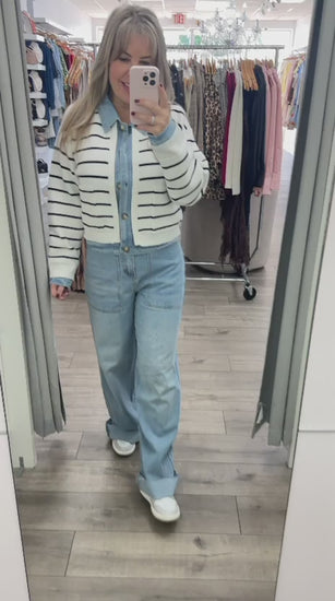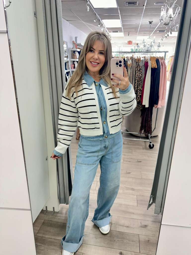 BEAUTIFUL JACKET STRIPED COMBINATION DEMIN AND NKIT